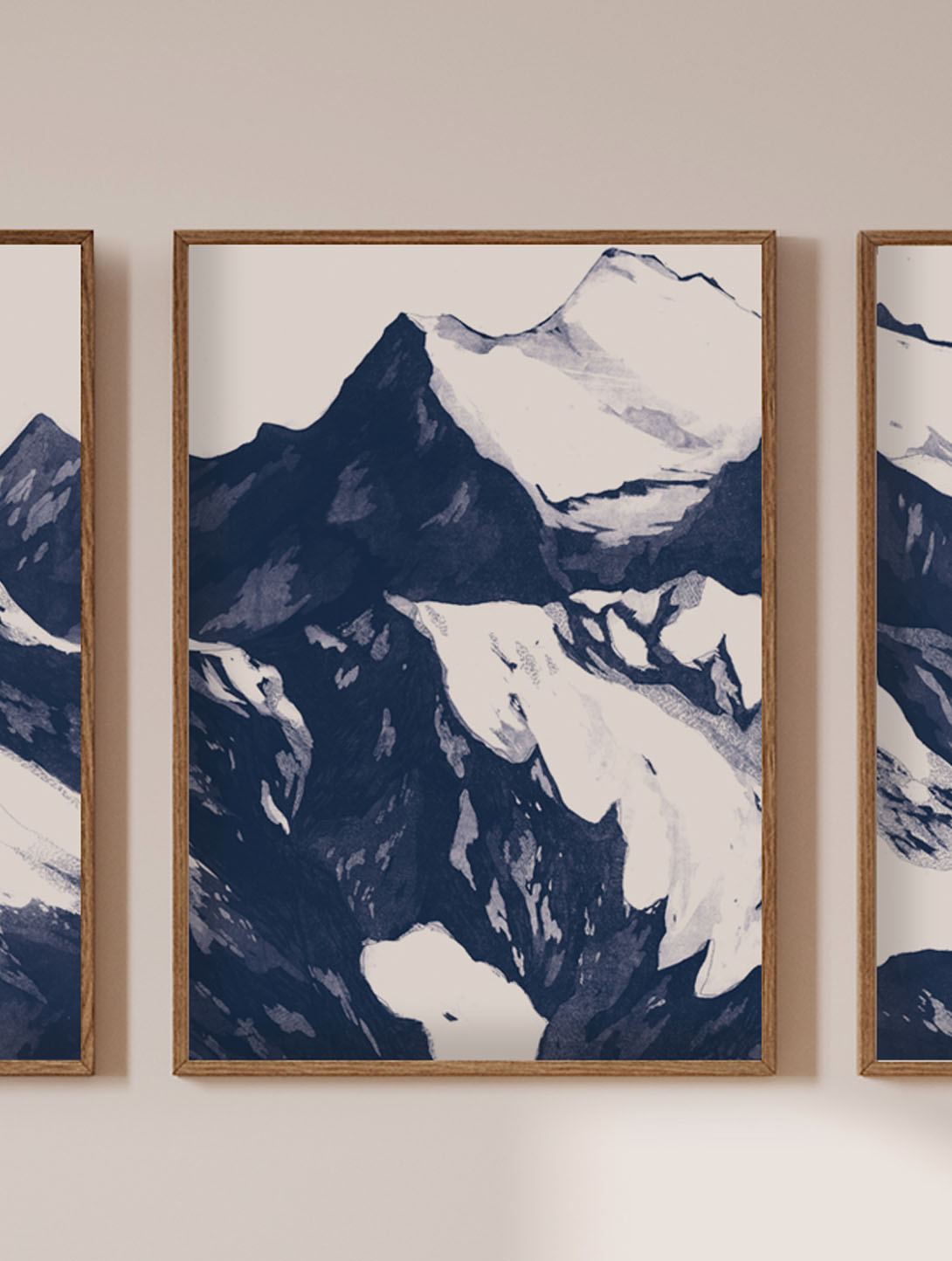 Ce sont des affiches de montagne réalisées à quatre mains, guidées par l’envie de capturer l’instant. Encres, gravures et textures s’y mêlent pour révéler des paysages sensibles. Nous sommes ravis de partager ces nouveautés inspirées de nos balades et de notre regard commun.
