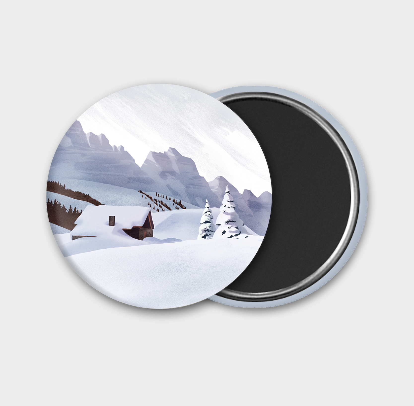 Très belle affiche d’un chalet sous la neige lourde de Janvier.