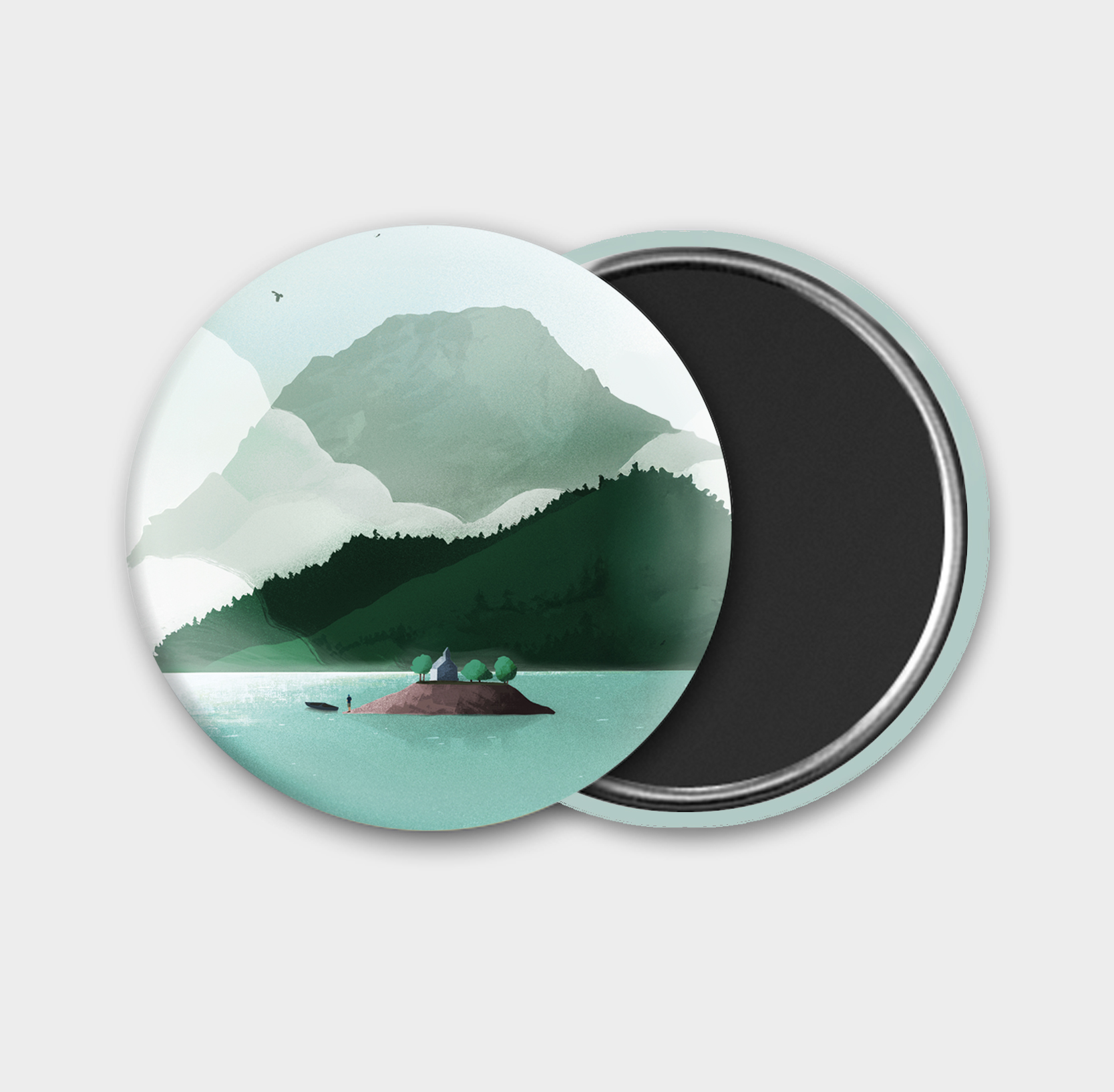 Très belle affiche représentant un Kayakiste accostant l’îlot de l’église saint Michel sur le lac de serre ponçons.