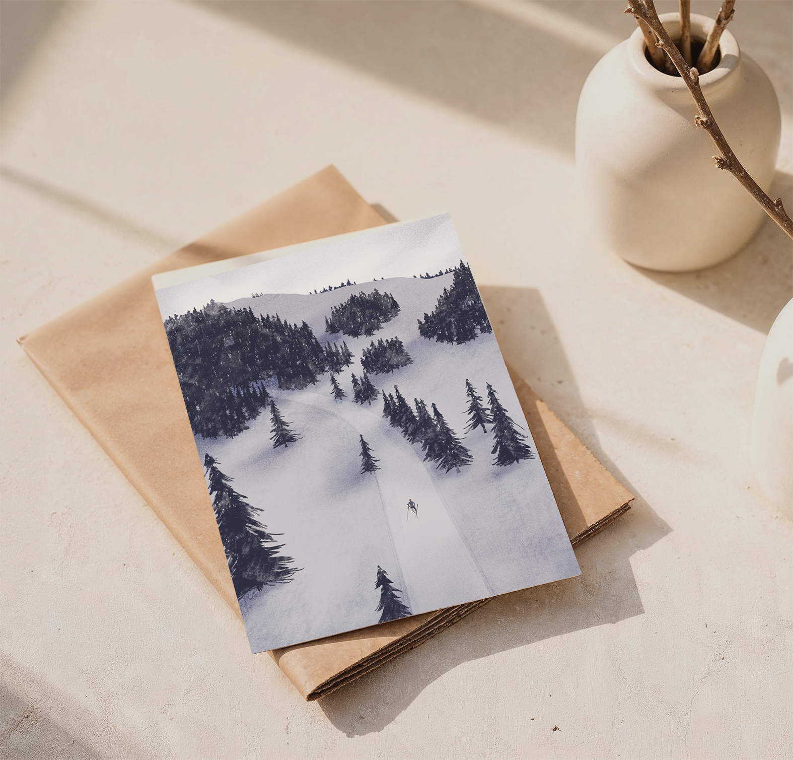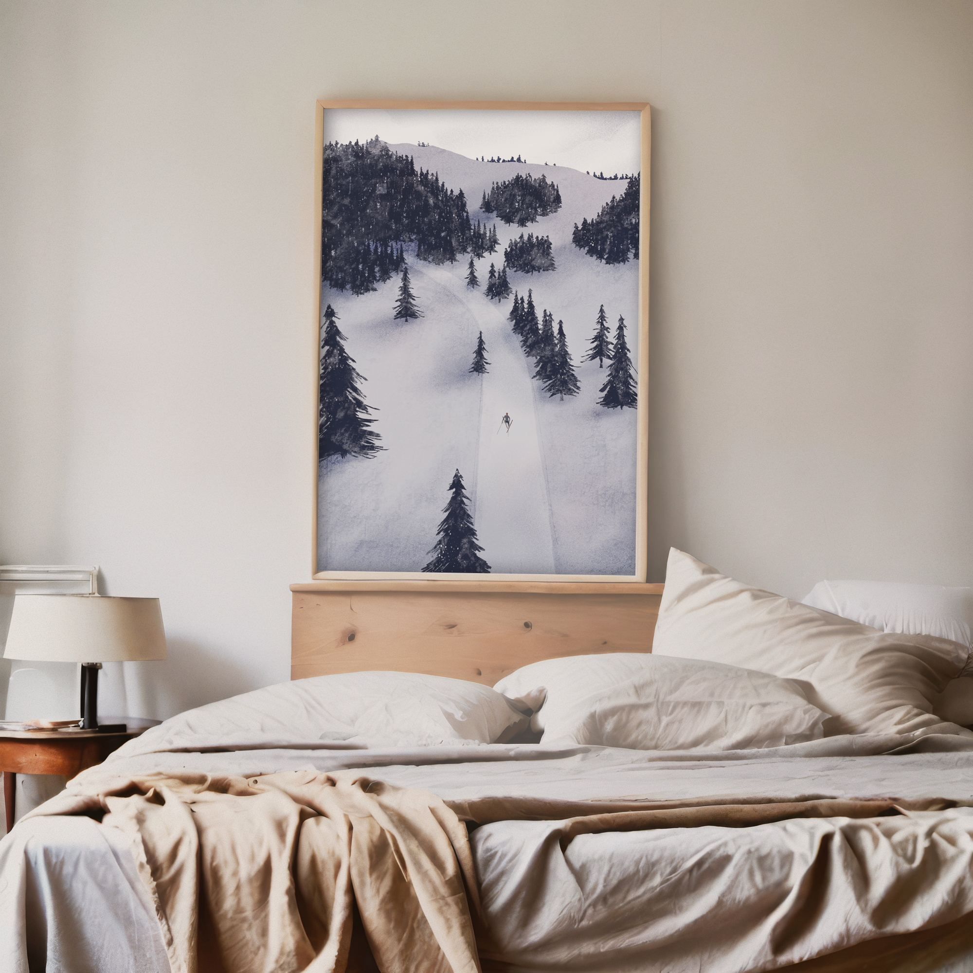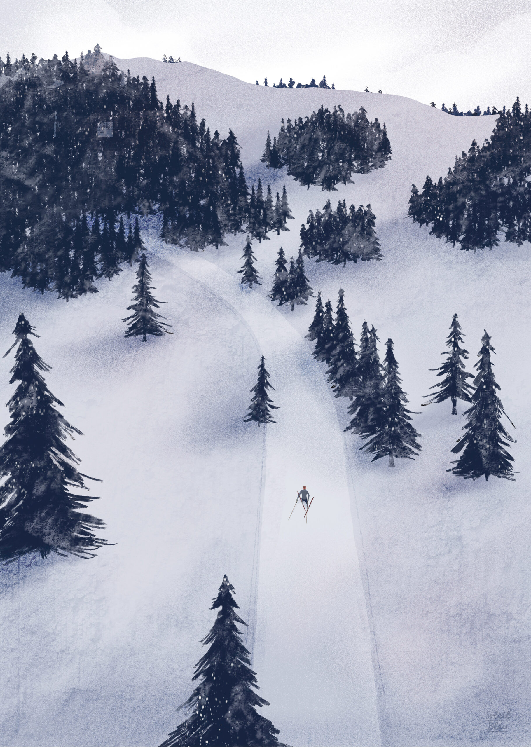 Très belle affiche représentant un skieur de fond, dans un paysage épuré et sauvage